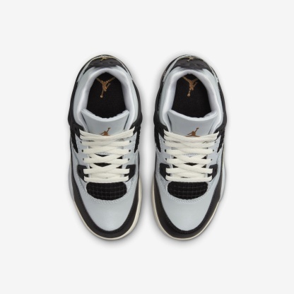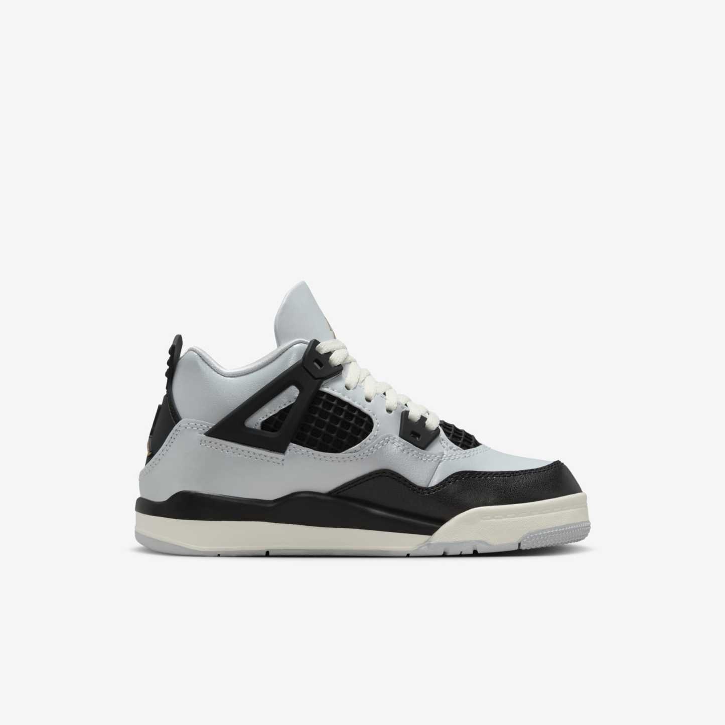 Brand: Air JordanModel: Air Jordan 4 Retro (PS)Nickname: 'Platinum Gold'Colorway: Pure Platinum / Metallic Gold - Black - SailSKU: FZ8586-070Release Date: 11/01/2024