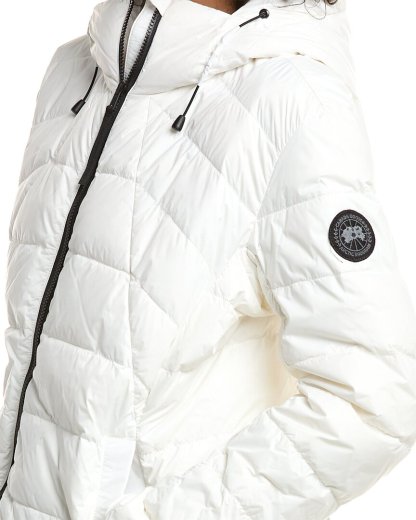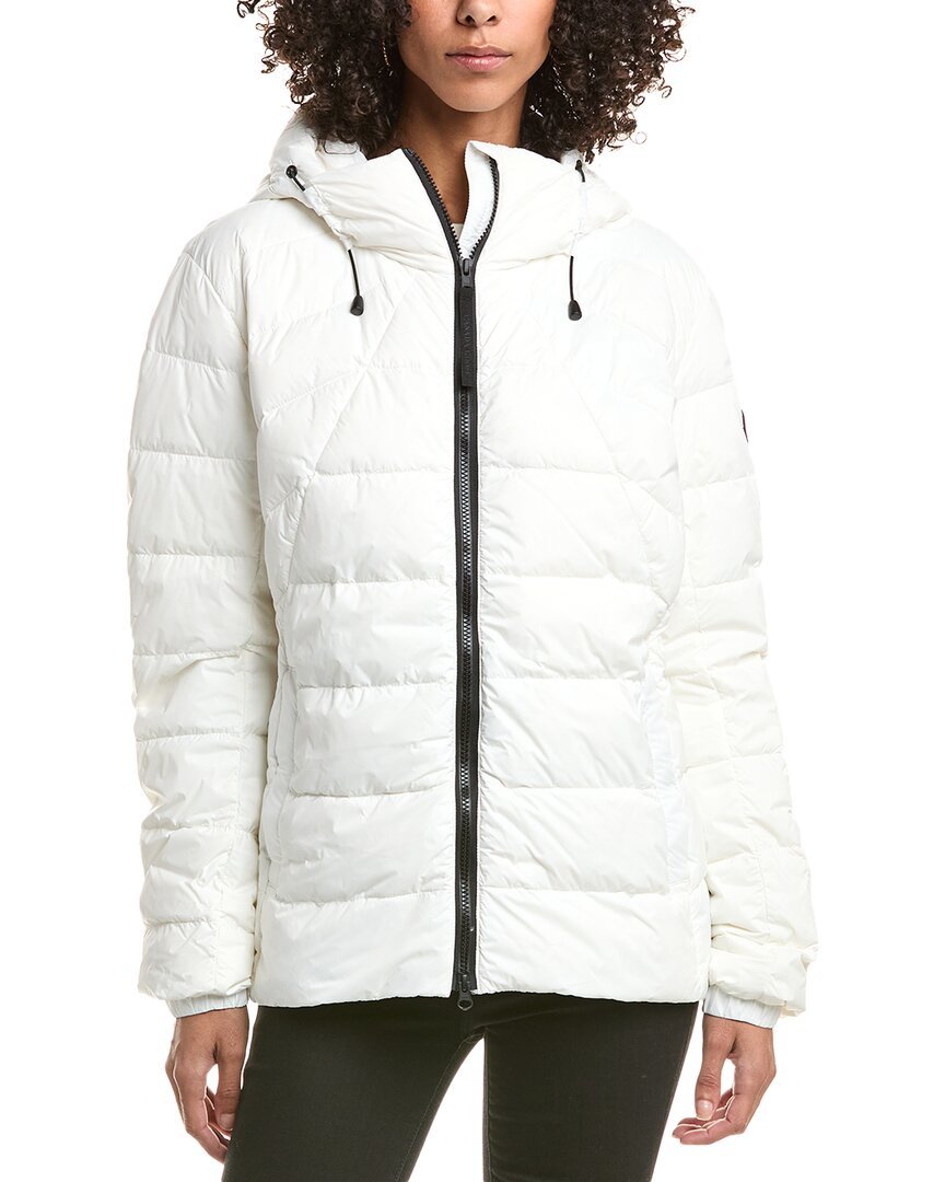 Introducing the Canada Goose Abbott Hoodie, a stylish and functional addition to your wardrobe. This lightweight hoodie features a hooded back, side slip pockets, and a zipper closure for easy layering. Made with 100% nylon shell, 100% polyester lining, and filled with 90% white duck down and 10% feathers, this hoodie provides warmth without sacrificing style. The Abbott Hoodie is approximately 24 inches from shoulder to hem, and is machine washable for easy care. Model is 5'9 and is wearing a size small. Please note that measurements may vary slightly by size. This hoodie is made in Canada and is 100% genuine, sourced from trusted independent suppliers. Shop now for quality and authentic Canada Goose apparel designed for the adventurous spirit.