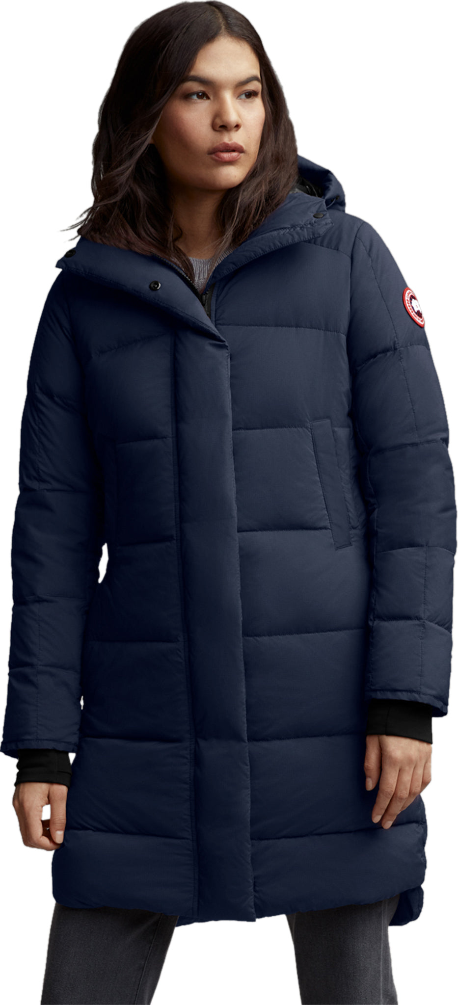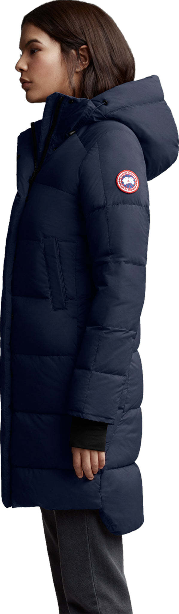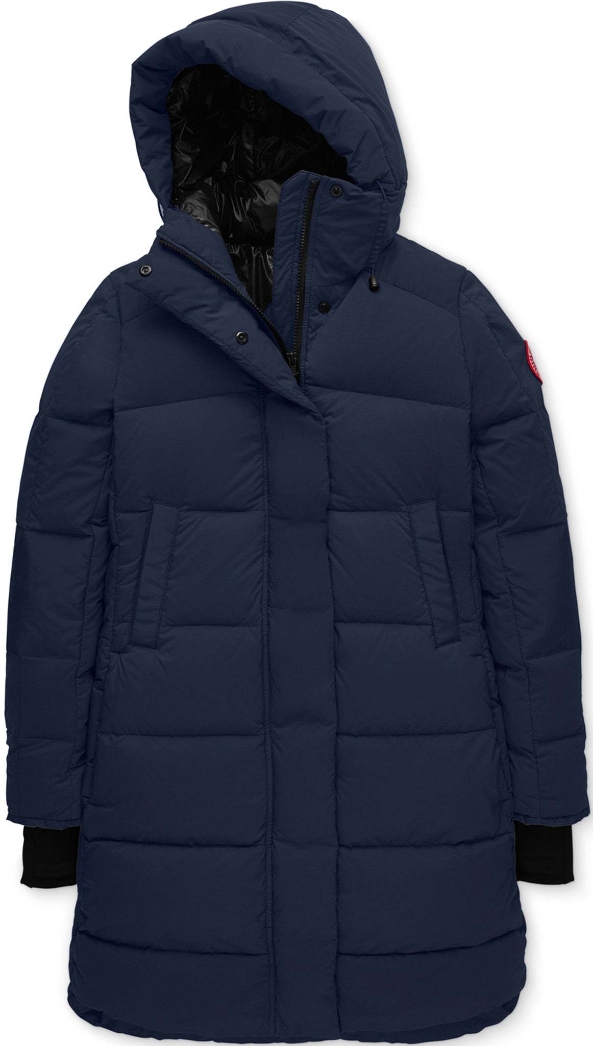 • 2-way adjustable down-filled hood adds warmth and element protection. Signature double-stripe reflective details at back for added visibility in low light