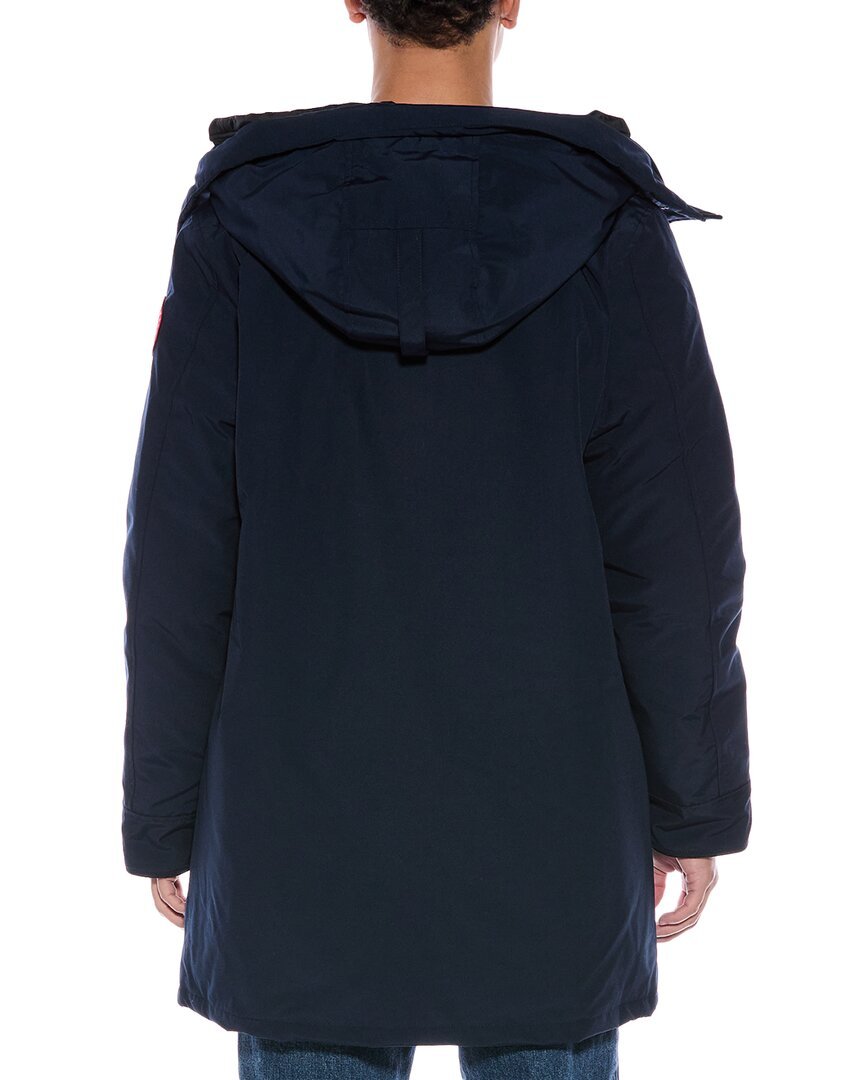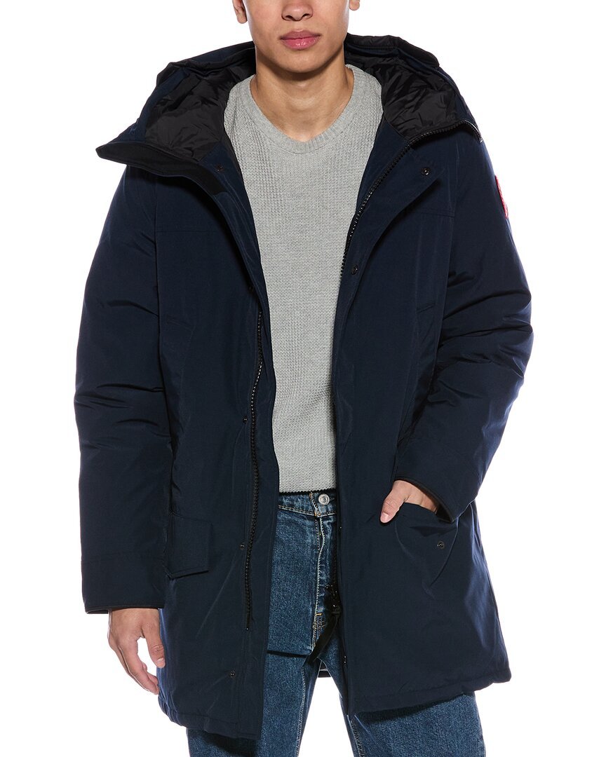 Introducing the Canada Goose Langford Down Parka, a must-have outerwear piece for the modern man. This durable and stylish parka features a hooded collar, two zippered front pockets, logo patch at sleeve, and one interior pocket for ultimate functionality. Measuring approximately 35.5 inches from shoulder to hem, this parka is designed for a comfortable and flattering fit. The zipper and snap closure ensure warmth and protection against the elements.Made with a shell of 84% polyester and 16% cotton, a lining of 100% nylon, and a fill of 80% white duck down and 20% feather, this heavyweight parka is designed to keep you warm in even the coldest temperatures. The padding of 100% polyester adds an extra layer of insulation.Imported and dry clean only, this parka is a high-quality and authentic product from Canada Goose. Purchase with confidence knowing that our products are 100% genuine, sourced from trusted independent suppliers. Embrace your next adventure with the Canada Goose Langford Down Parka.