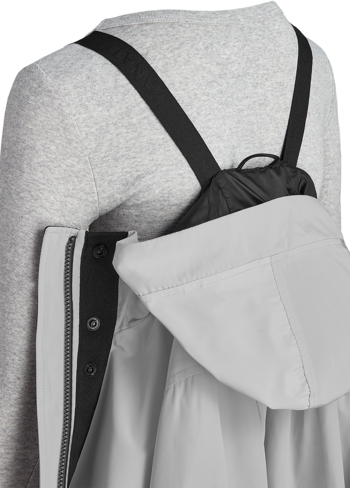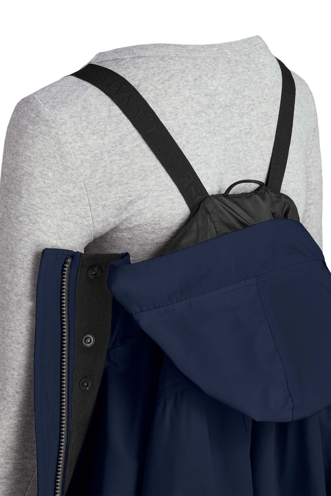 • Deux poches extérieures : poches réchauffe-mains avec fermetures à bouton-pression dissimulées et tricot
