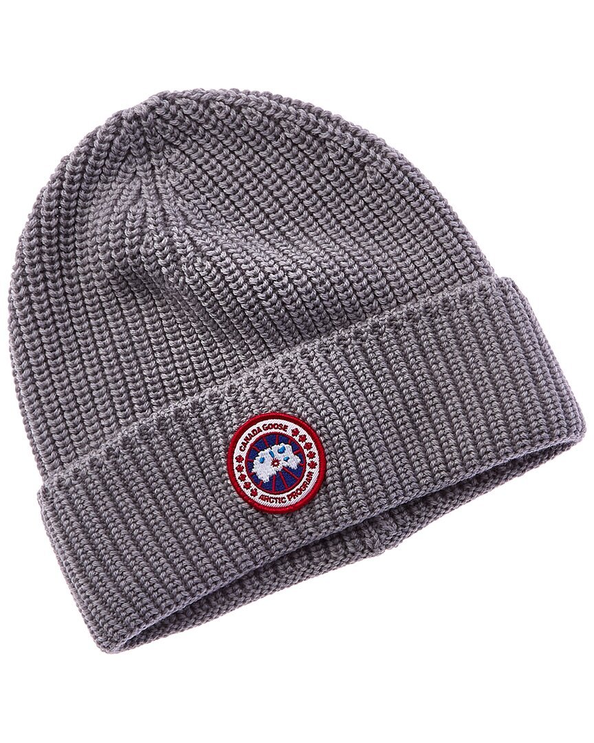 Introducing the Canada Goose Ribbed Wool Hat, a stylish and practical addition to any outfit. This hat in grey features the iconic Canada Goose logo on the front and a foldover hem for extra warmth. Made from 100% Merino wool, this hat is both cozy and luxurious. Made in Italy and designed with a function-first approach, this hat is perfect for your next outdoor adventure. Please note that this hat is dry clean only to maintain its quality. When you purchase from us, you can trust that our products are 100% genuine, sourced from trusted independent suppliers. Add this Canada Goose Ribbed Wool Hat to your collection for a touch of Canadian heritage and quality craftsmanship.