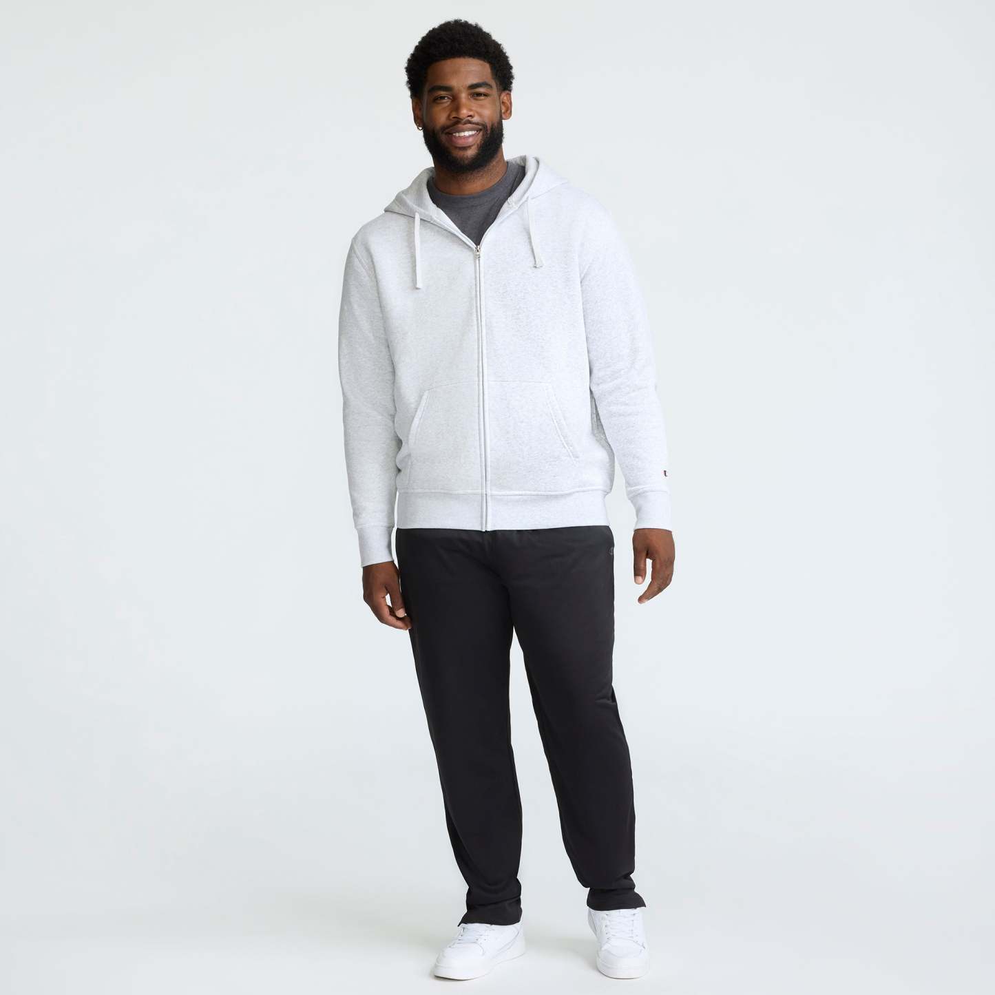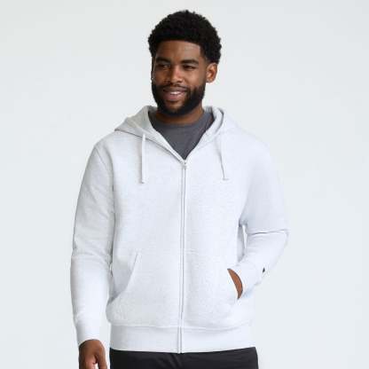 This Powerblend® Zip-Up Hoodie is the perfect men's sweatshirt to get you from here to there in cool comfort. Made from a durable fleece fabrication that resists pilling and shrinkage, this hoodie is a lifer, no doubt. You'll love the double-lined hood designed to keep you warm, while the ribbed cuffs and hem add structure and classic sweatshirt swagger. Two front pockets keep essentials close while the zip-up style lets you choose the look. Pair this sweatshirt with your best Champion joggers or shorts for a custom fit all your own. Stitched C logo sits on the chest while the iconic C logo patch hits at the wrist.