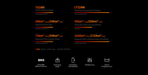 | Range (160mm Pneumatic)(+AUXPack) | X | X | 95km/60miles | 85km/52miles | 95km/60miles | 85km/52miles |