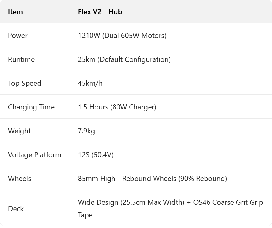 The Exway Flex V2 Electric Skateboard redefines the entry - level riding experience! Centered around high performance and great value for money, it features a 12S high - voltage platform, dual - drive motors, and 1.5 - hour fast charging. Balancing agile control and powerful momentum, it’ll make you fall in love with riding from the very first glide, effortlessly kickstarting your journey of free - spirited skating.