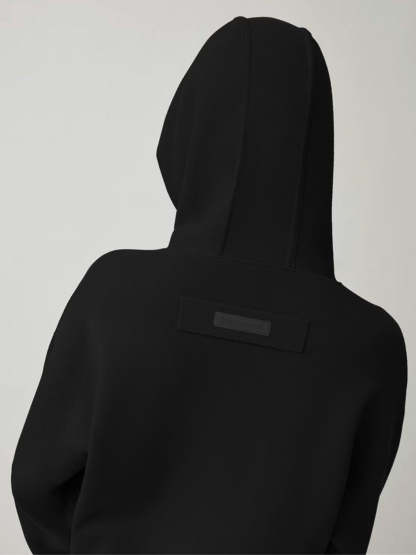 This cropped hoody jacket by Canada Goose is designed for comfort and warmth, featuring a relaxed fit, a cozy hood, and long sleeves. The soft wool blend fabric provides an inviting texture, enhanced by a minimalist aesthetic highlighted by a discreet logo on the back. Perfect for casual outings or lounging in style, this piece epitomizes elevated leisurewear.