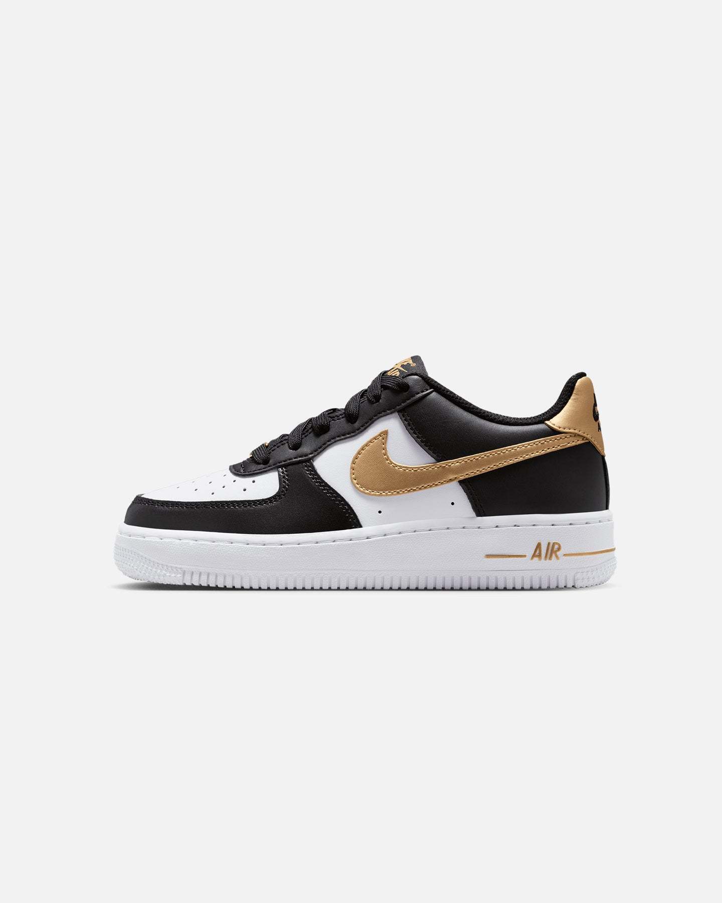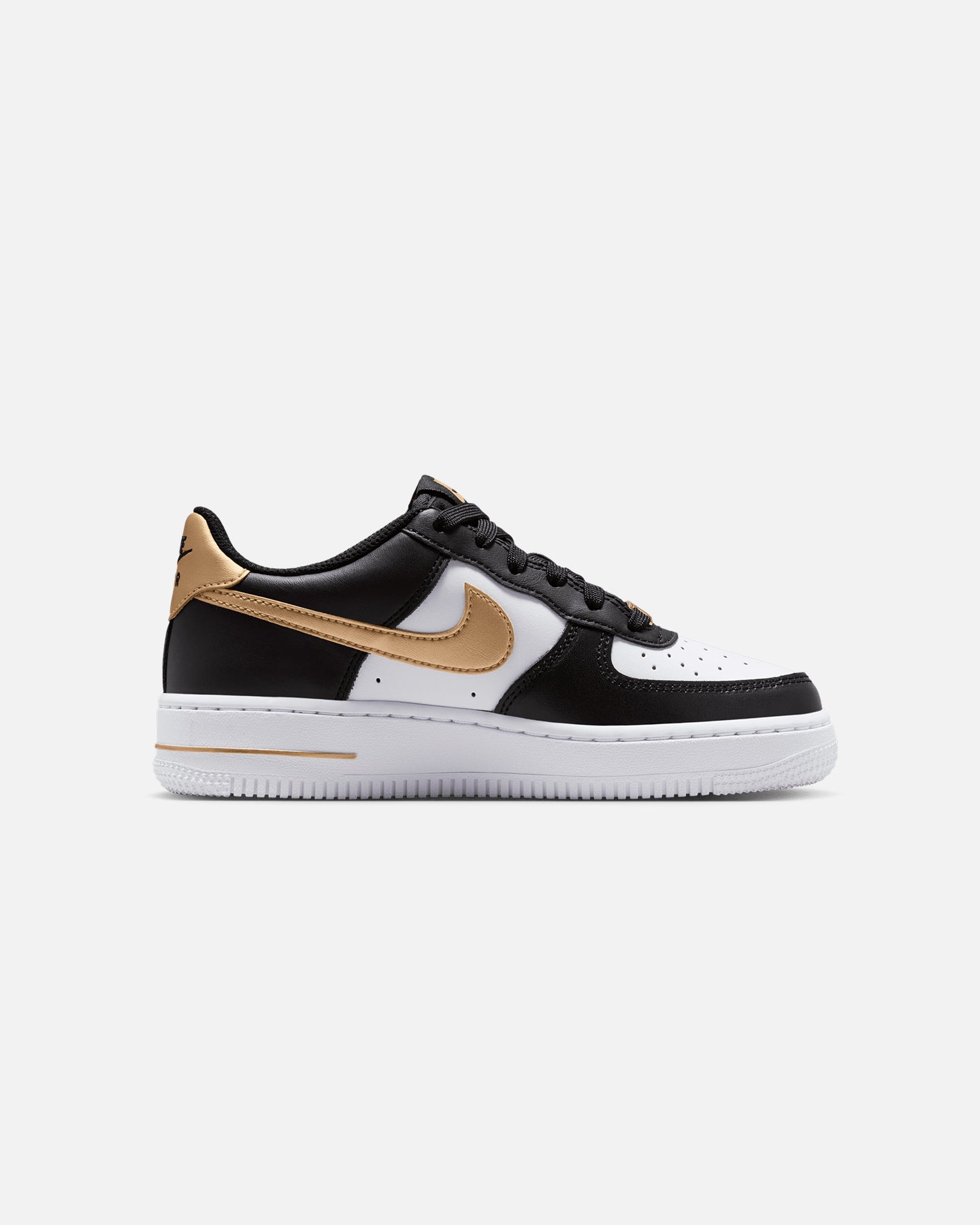 Kick it in comfort in the nithtke Air Force 1. The feel of classic leather and details that made this shoe an icon are sure to make your sneaker style stand out on the street. Cop yours today at Culture Kings.- Real and synthetic leather upper- Air-Sole unit- Rubber outsole- Padded collar- Low-cut silhouette- Lace-up closure- Colour: Black/Metallic Gold- Style: CT3839-009