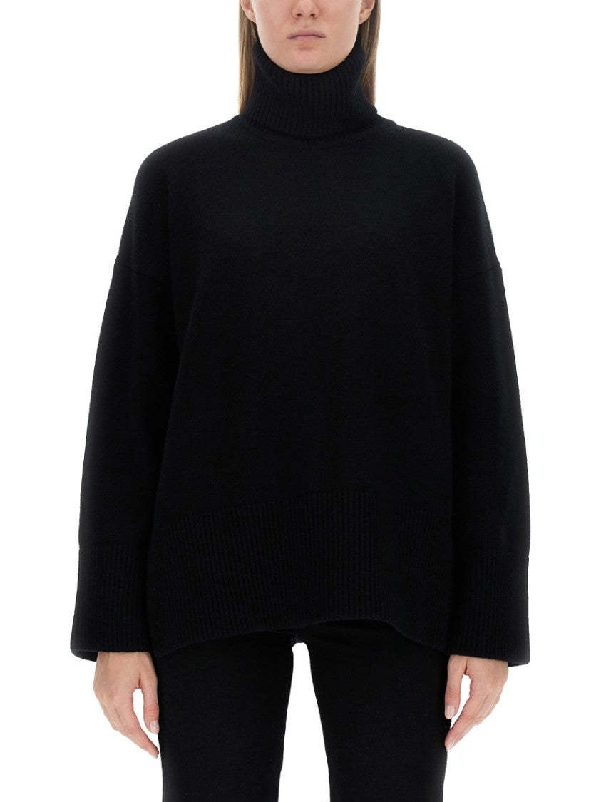 Canada Goose presents a refined turtleneck sweater made from luxurious cashmere, epitomizing comfort and elegance. This black shirt features a relaxed fit with dropped shoulders and ribbed accents at the cuffs and hem, combining warmth with a minimalist aesthetic, perfect for effortless layering throughout the seasons.