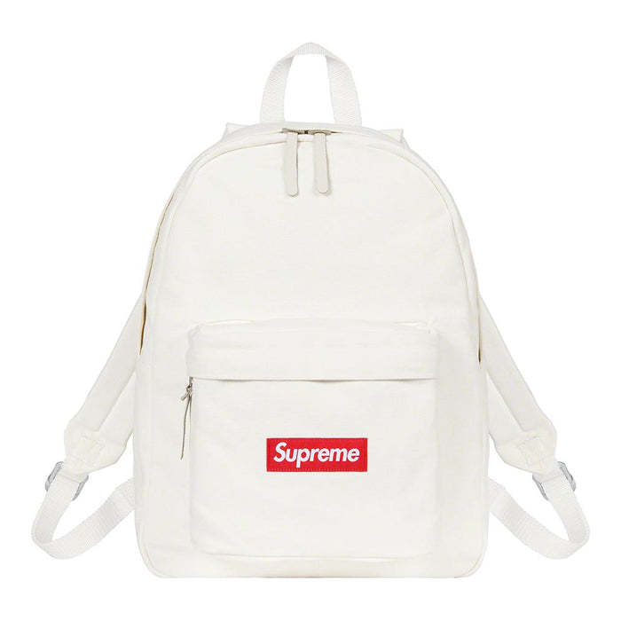 All cotton heavyweight 18 oz. canvas with cotton twill lining. Main zip compartment and front zip pocket. Woven logo label at front. 20L.