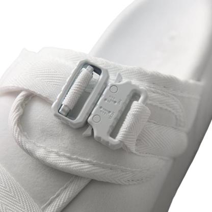 Introducing a fresh metal clasp for a snug fit, complemented by a Velcro strap atop the slide to prevent any hanging straps.