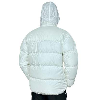 Seltene Vintage Winterjacke von Nike im klassischen Puffer-Stil. Farblich in cleanem Wei? mit Navy?Innenfutter gehalten �C stylisch, warm und funktional zugleich. Die F��llung aus 72?% Daunen & 28?% Federn sorgt f��r optimale W?rmeisolierung, ideal f��r kalte Tage.